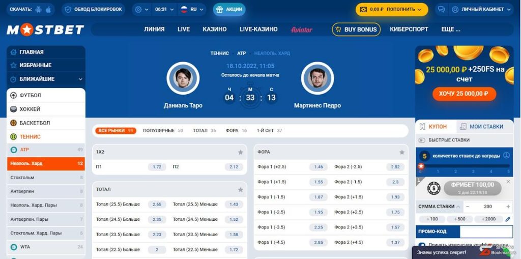 Интерфейс Mostbet интуитивно понятен даже новичкам, а заключение пари занимает минимум времени. Для оформления ставки достаточно выбрать интересующую дисциплину, событие и исход, после чего коэффициент автоматически появится в купоне, расположенном в правой части экрана. В нём пользователь указывает сумму пари и подтверждает действие.